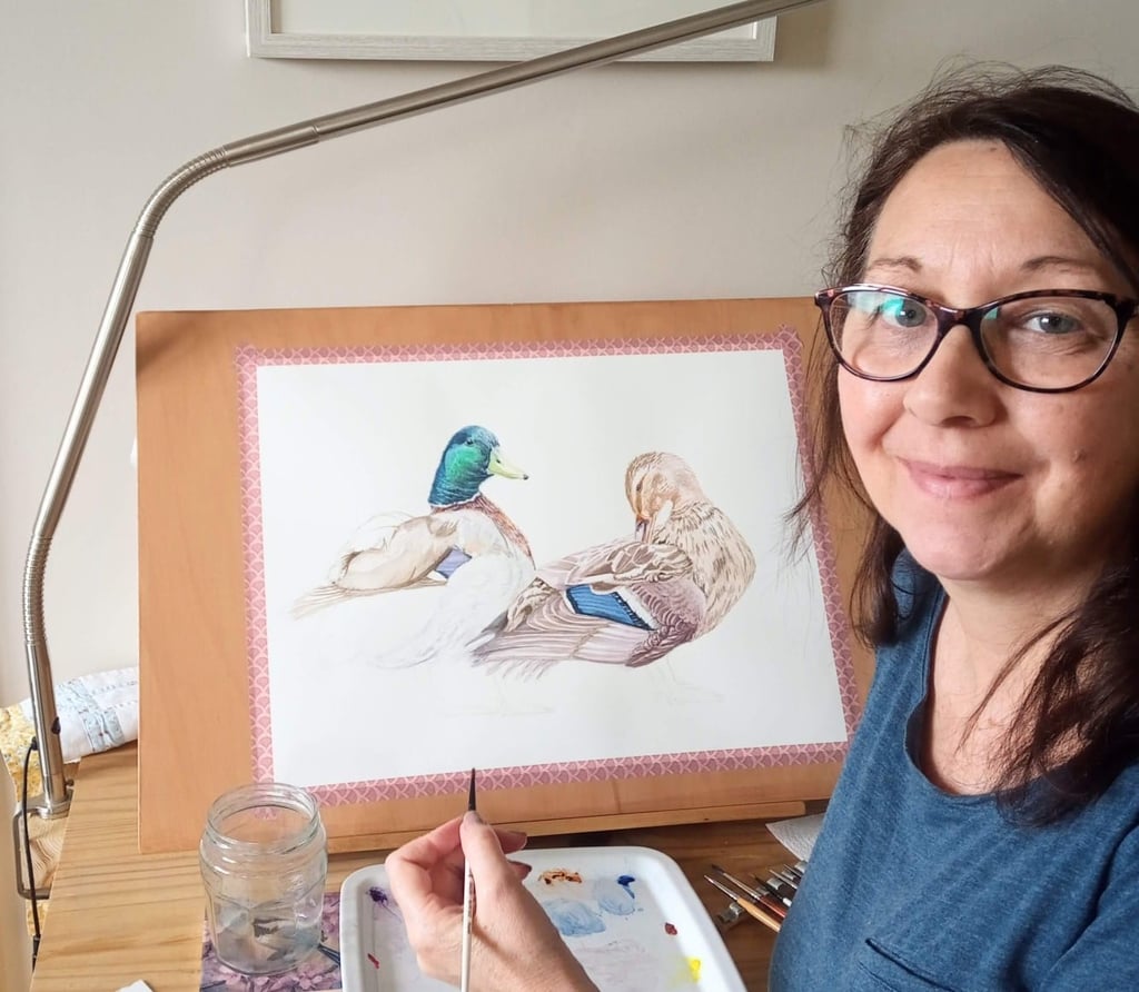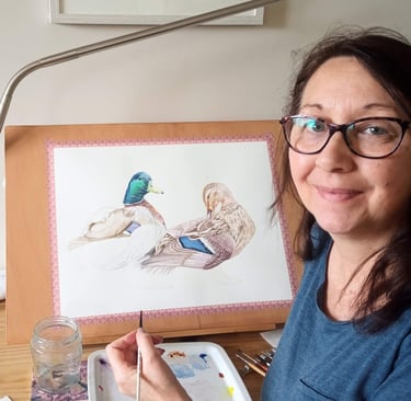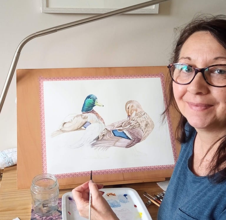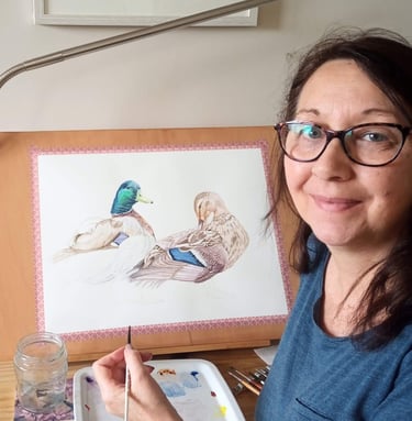 Michelle is a wildlife and pet portrait artist, specialising in highly detailed, realistic watercolour paintings that capture the delicate beauty of the natural world. Her work is inspired by deep appreciation for the quiet elegance of British birds and their intimate connection to water, whether it's the stillness of a lake, the flow of a river, the shifting tides of estuaries or the rugged coasts.